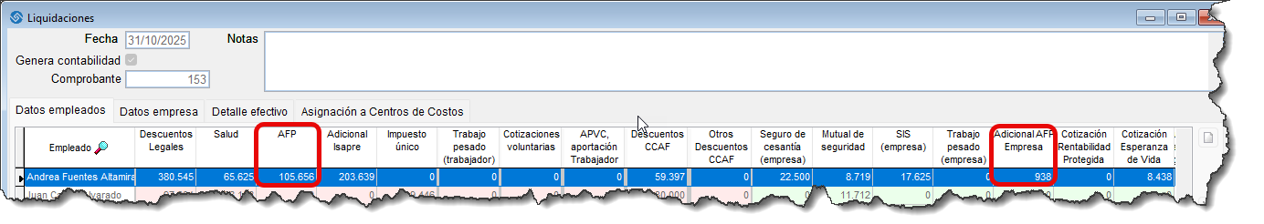 - Cotización Empleador (1% Adicional): Incluida en la columna "Adicional AFP Empresas".