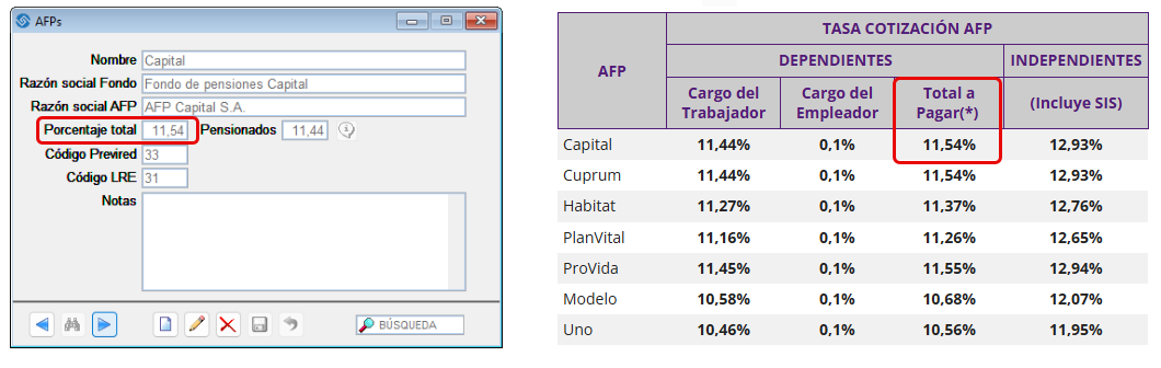 - Paso 1: Validar Porcentajes. Vaya a Personal > AFPs y compare los porcentajes con los indicadores previsionales de PreviRed.