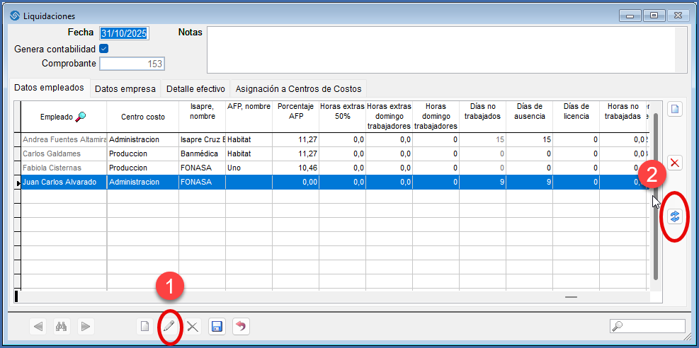 - Recalcular Liquidación: En “Personal/Liquidaciones”, edite, desde la barra lateral recalcule, y guarde.