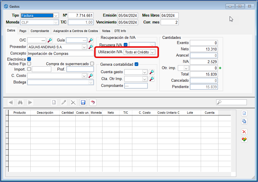 - Para las empresas que utilizan “Proporcionalidad del IVA” (por existir durante el año ventas afectas y exentas) deberá haber indicado la “Utilización del IVA”